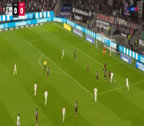 第56分钟,基米希左路传中,凯恩头球争顶未果,于帕梅卡诺顺势倒钩射门踢偏,凯恩门前劲射,又击中立柱。第71分钟,莱默尔挑球过人,随后送出直塞,凯恩插上单刀,被法兰克福门将放倒,不过裁判示意越位在先。