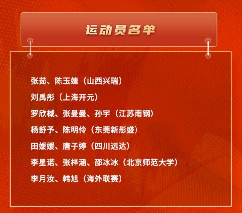 到了新年,中国女篮公布了一份集训选拔名单,鉴于联赛正在进行,只是部分的征召球员,人数一共15人。其中,东莞女篮2人,包括中锋陈明伶,以及前锋杨舒予。山西女篮2人,张茹、陈玉婕。江苏女篮3人:罗欣棫、张曼曼和孙宇。四川女篮2人:田媛媛、唐子婷。北京师范大学留下3人,为李星诺、张梓涵和邵冰冰。海外的球员2人,李月汝和韩旭。但是这两名球员本期集训暂不参加。