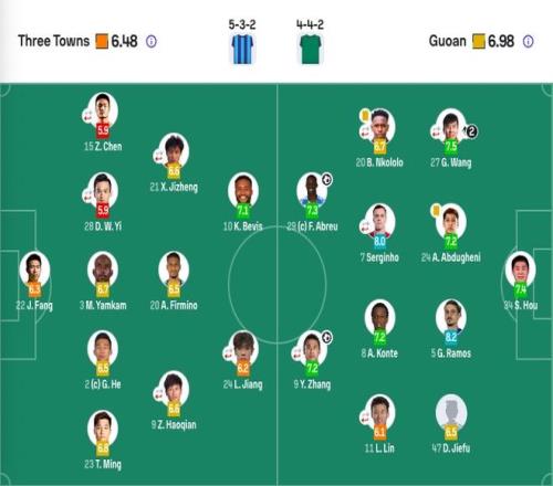 后卫:2-贺惯、3-亚姆卡姆(F)、28-王毅(82'37-王康)